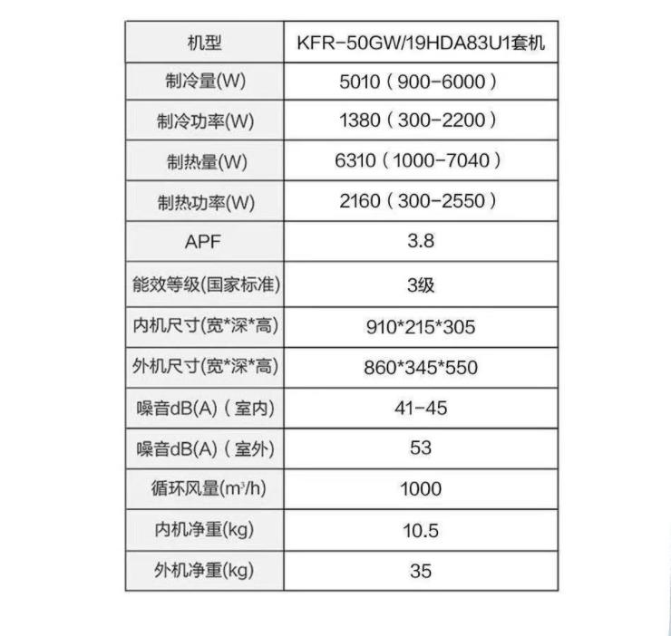 室外機(jī)型號  :   KFR-50GW/19HDA83U1