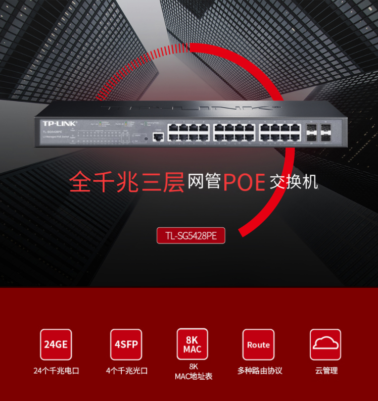 以太網(wǎng)交換機(jī)普聯(lián)/TP-LINK24口全千兆4個(gè)SFP光纖口企業(yè)網(wǎng)絡(luò)匯聚三層網(wǎng)管POE交換機(jī)TL-SG5428PE/臺