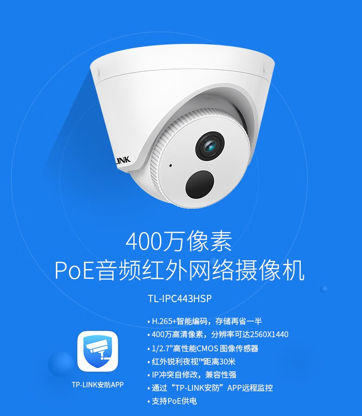 監(jiān)控?cái)z像機(jī)普聯(lián)/TP-LINK紅外夜視拾音半球 有線監(jiān)控 高清夜視TL-IPC433HSP/臺(tái)