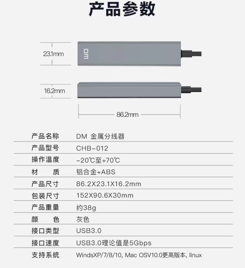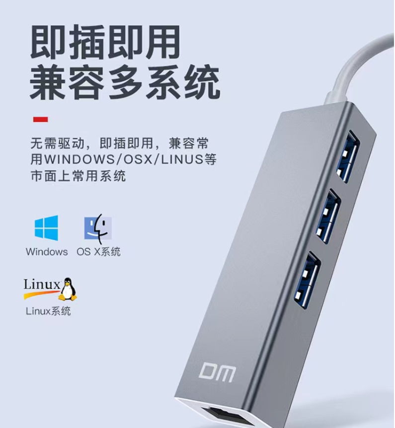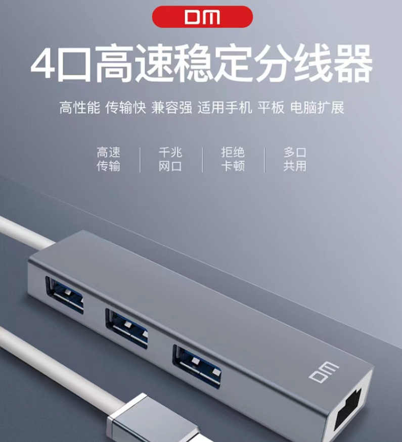 集線器大邁/DM USB轉(zhuǎn)USB3.0*3+千兆網(wǎng)口 集線器CHB012/個