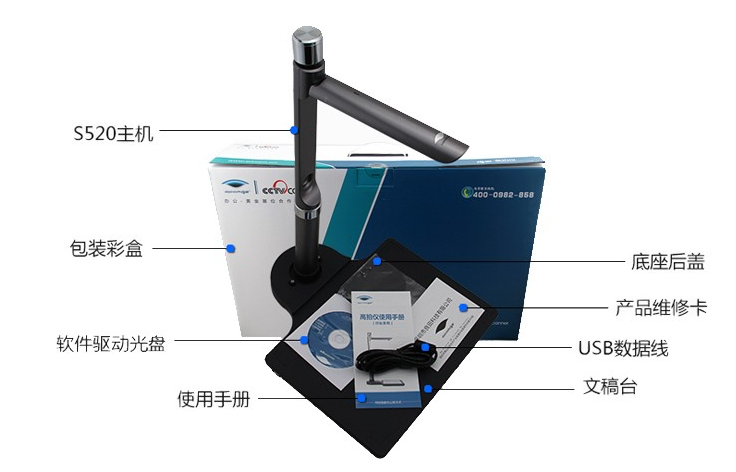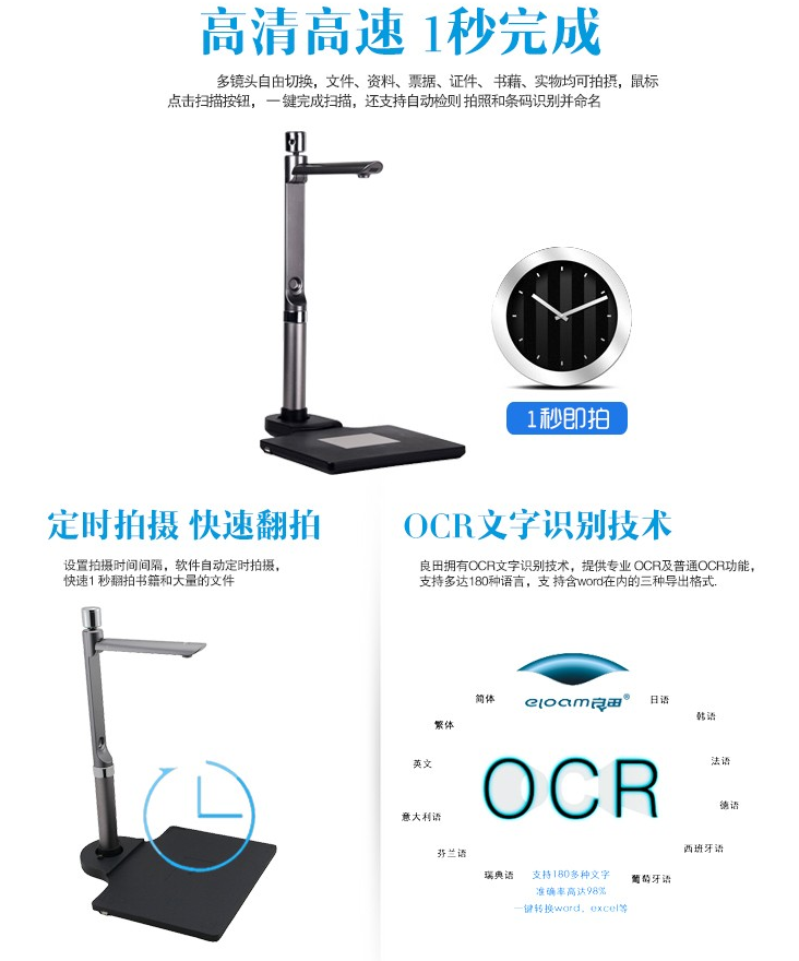 掃描儀良田/eloam高拍儀 雙攝像頭 500萬像素高清高速快拍儀速拍儀掃描儀S520/臺