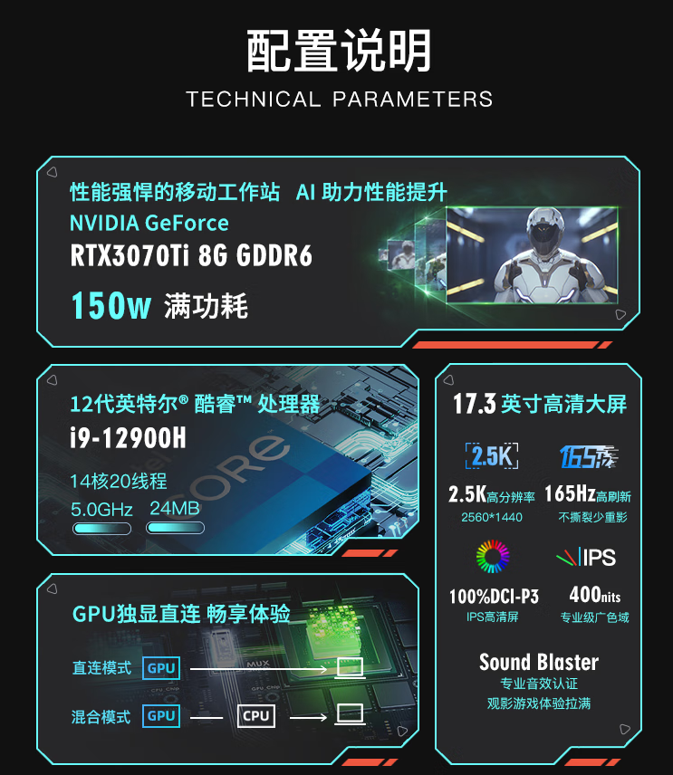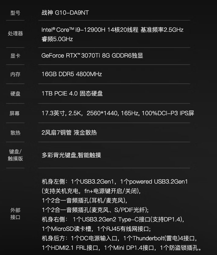 便攜式計算機神州戰(zhàn)神G10-DA9NT 新12代i9-12900H RTX3070Ti 17.3英寸游戲本電腦(16G 1TB 2.5K 165Hz 100%DCI-P3)