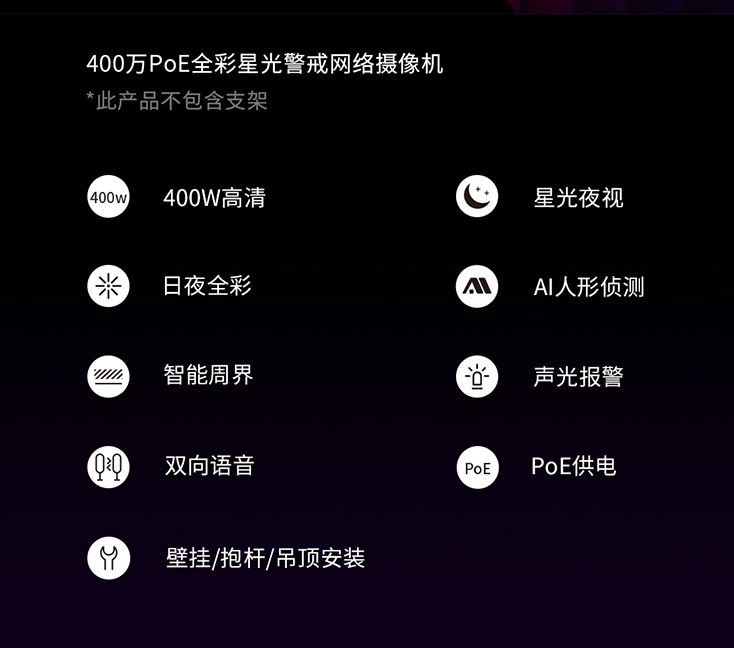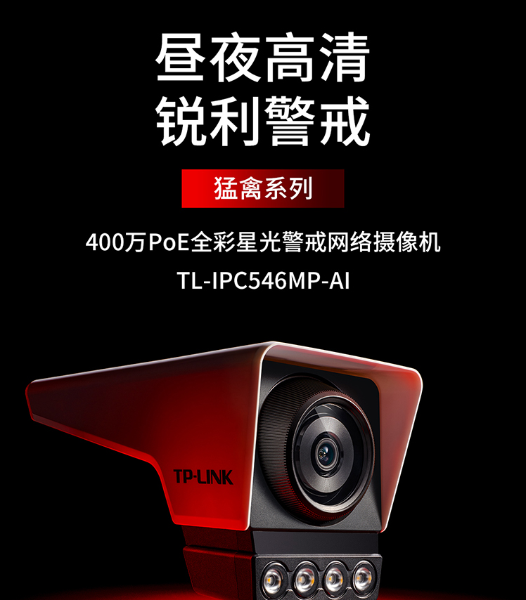 監(jiān)控攝像機普聯(lián)/TP-LINK400萬全彩星光夜視 POE/DC供電 室外戶外防水高清監(jiān)控攝像頭TL-IPC546MP-AI4/AI6/臺