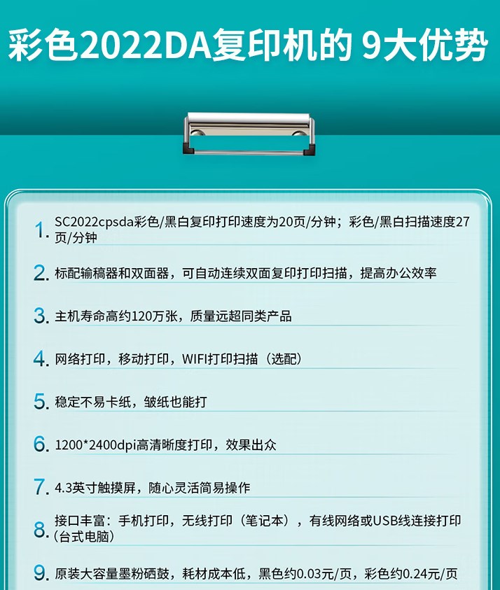A4復(fù)印速度(彩色)  :   20